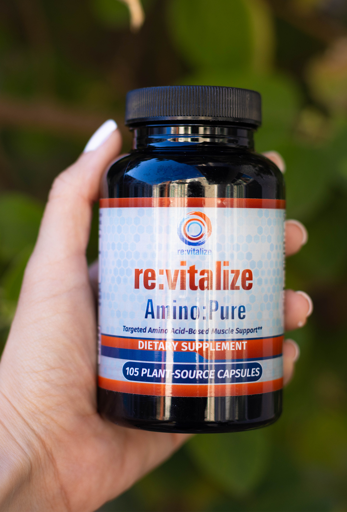 re:vitalize Amino:Pure provides a robust amino acid support to help the body create a natural supply of growth hormone. This helps build muscle when combined with exercise and adequate protein consumption.†