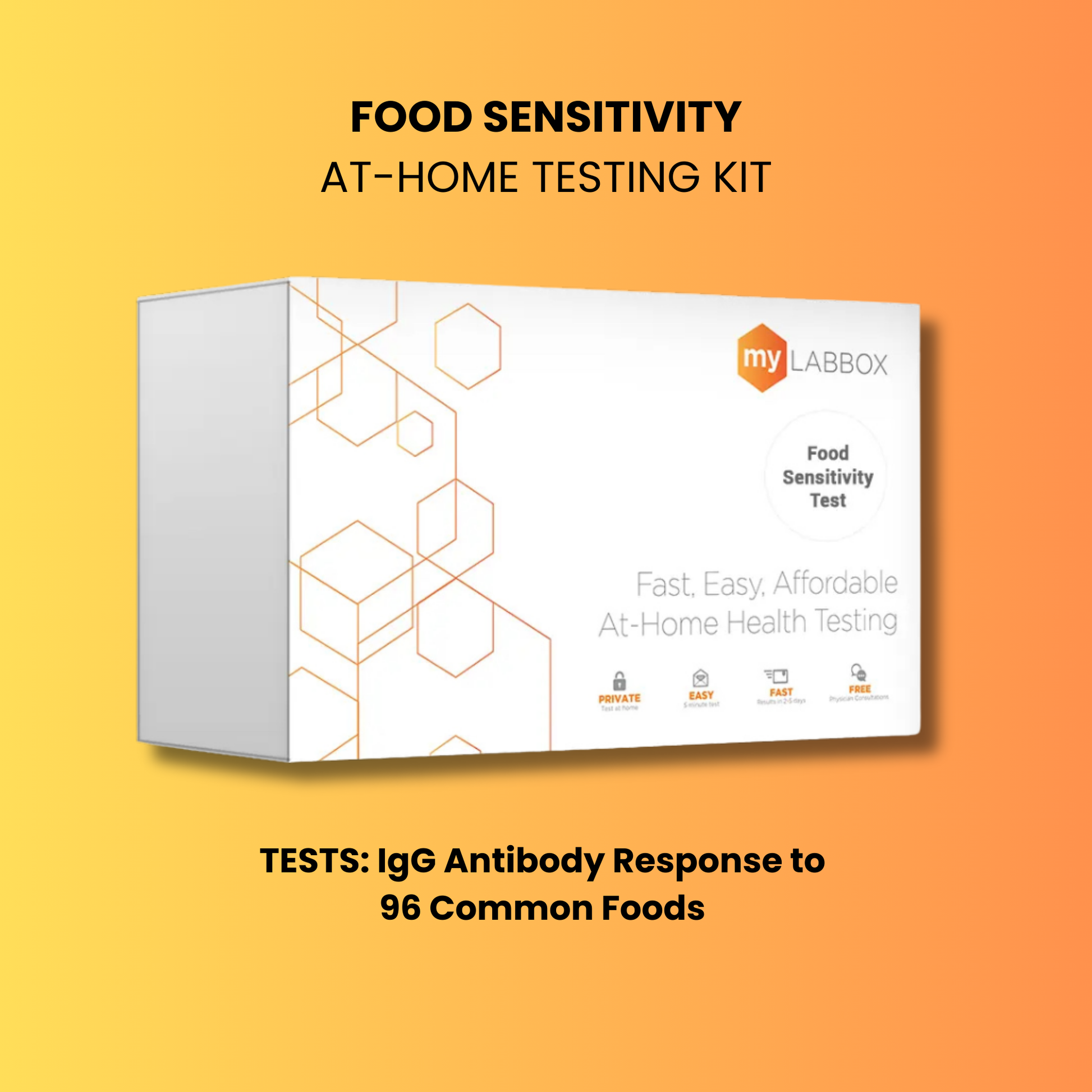 This test measures your body’s IgG antibody response to 96 common foods, helping you identify potential sensitivities that could be contributing to symptoms like bloating, fatigue, headaches, or stomach pain.