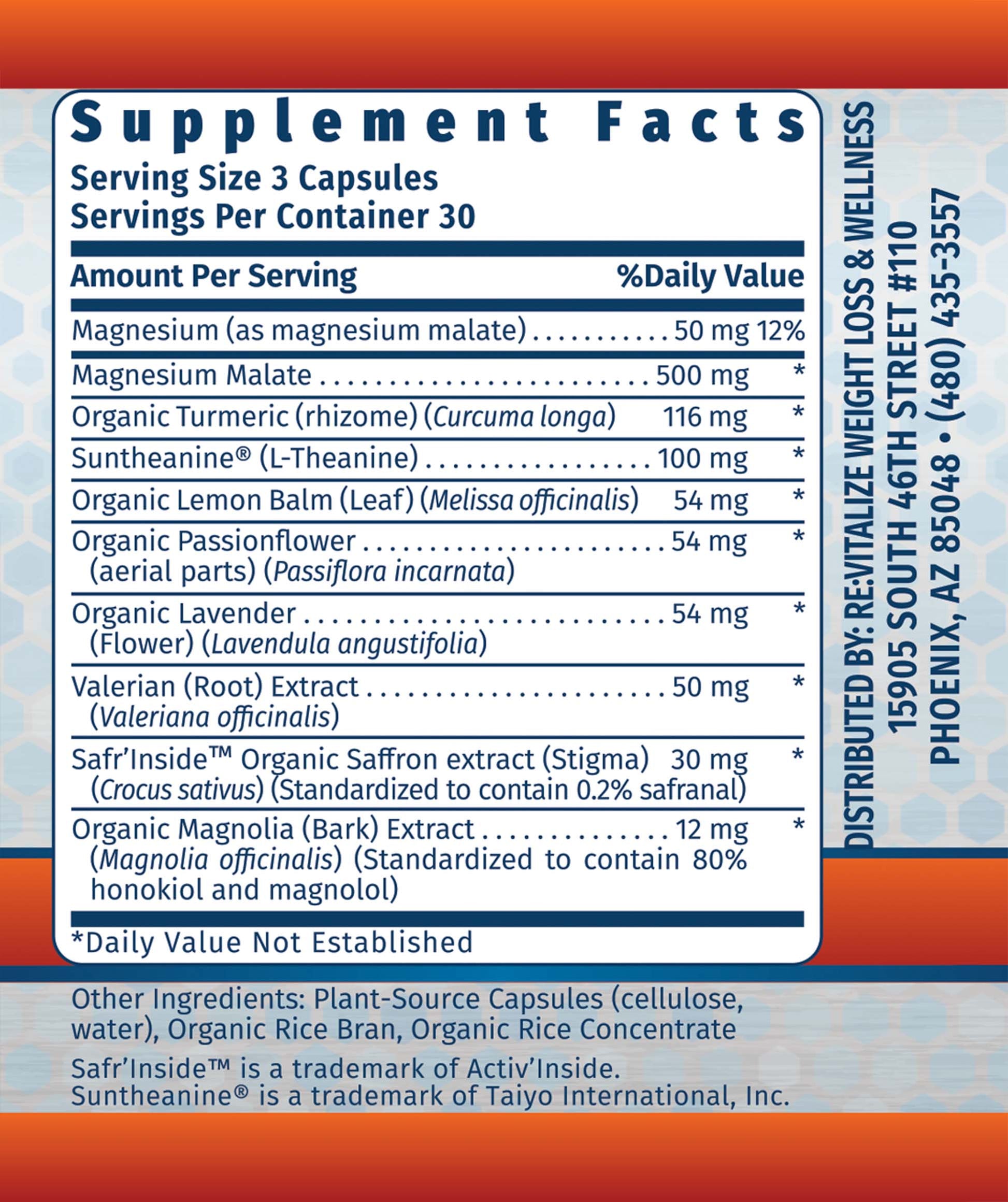 - Instructions: 3 Capsules at Bedtime. For a deep, restful sleep take 3 capsules of re:vitalize Calm before bed. 1 Capsule, Three Times Per Day. If taking to support a calm mind and fight anxious or overactive mind, take 1 capsule of Calm three times throughout the day.